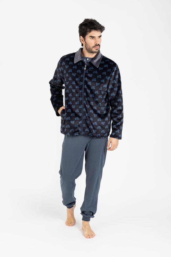 Corte clásico de bata de hombre, fácil de llevar sobre pijama, chándal o ropa de casa.