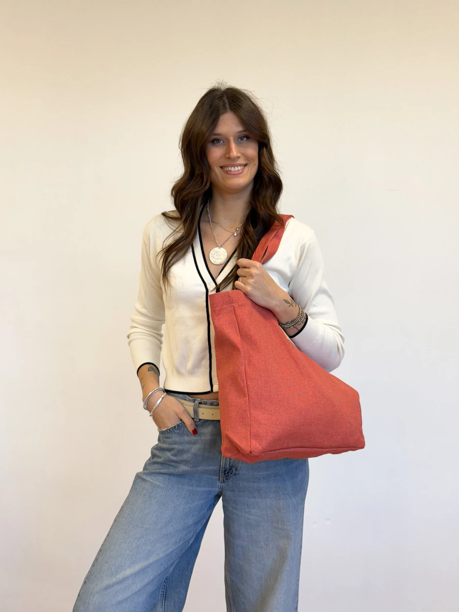 Su formato tipo tote y sus asas para llevar al hombro lo convierten en el compañero ideal para el día a día: trabajo, recados, universidad, o incluso como bolsa extra para una escapada.