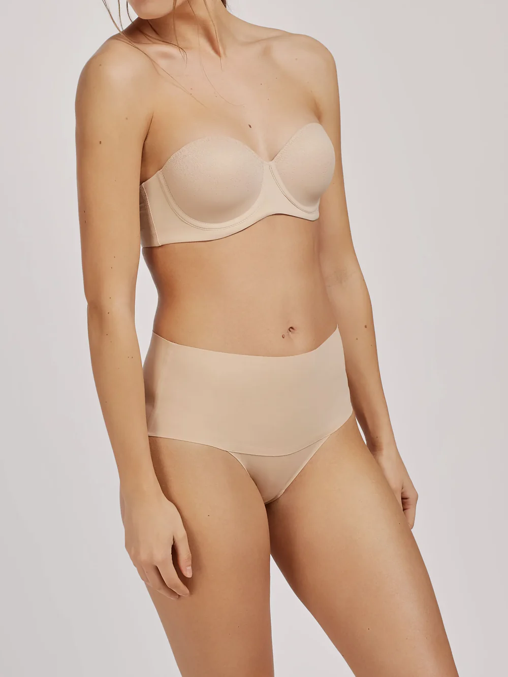 Sus acabados invisibles la hacen perfecta para usar con prendas ajustadas, ya que no marca ni se nota.
