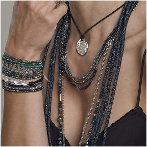 El collar Selene Tropic Art, de cordón negro con medallón plateado, es un básico con efecto joya que combina con todo.