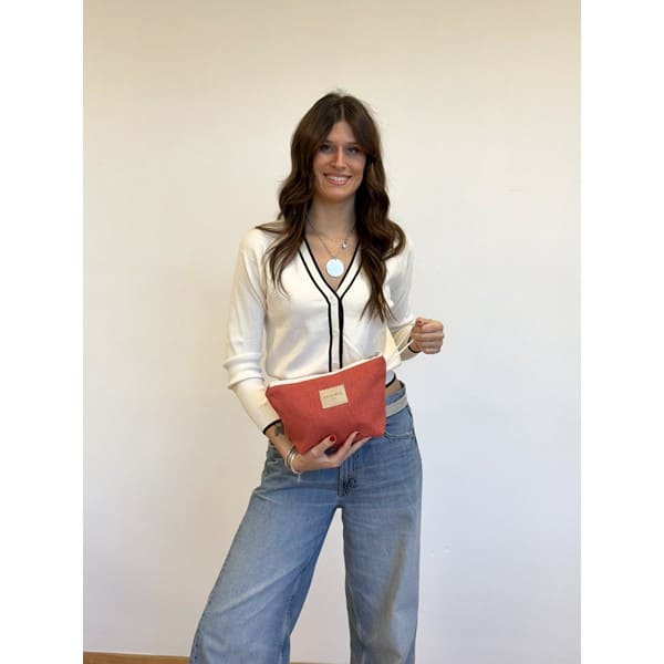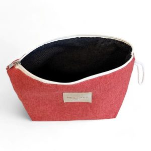 Este neceser pertenece a una colección realizada con algodón certificado GRS, con materia reciclada y un enfoque de producción sostenible.