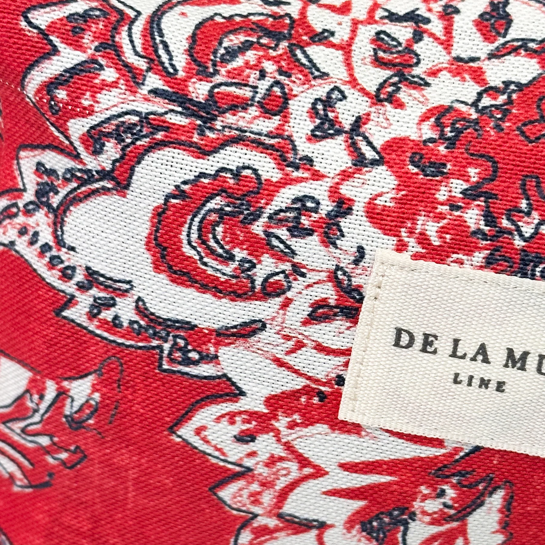 Neceser mediano De La Mur USHA, en tejido half-panamá con estampado floral blanco y rojo, con cremallera superior y asa lateral. Medida 16×13 cm, ideal para guardar maquillaje, cremas faciales y botellitas pequeñas. Confeccionado con telas nacionales.