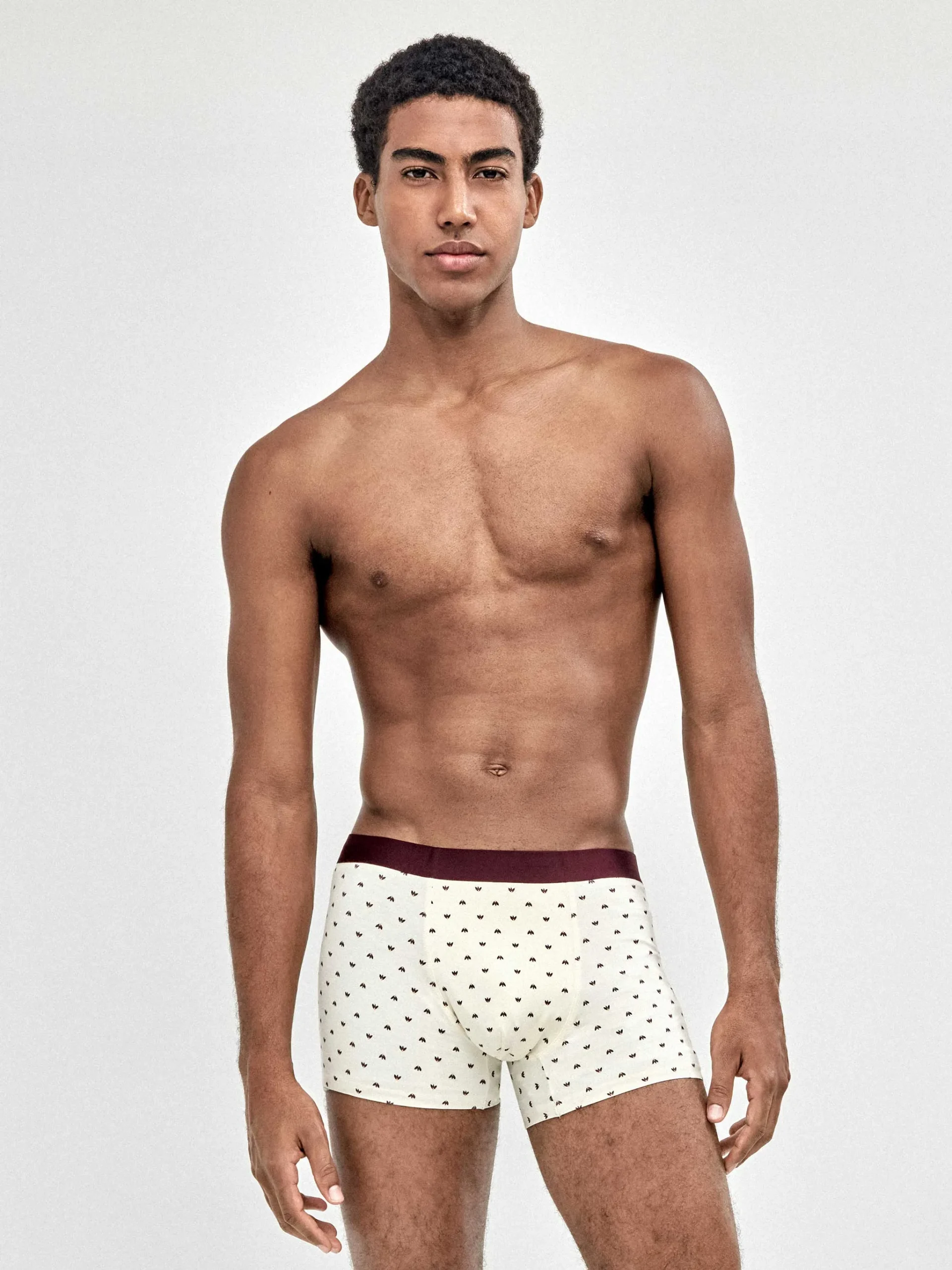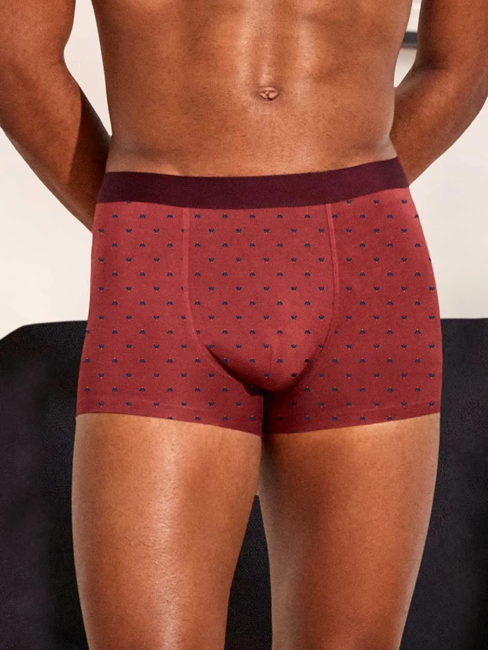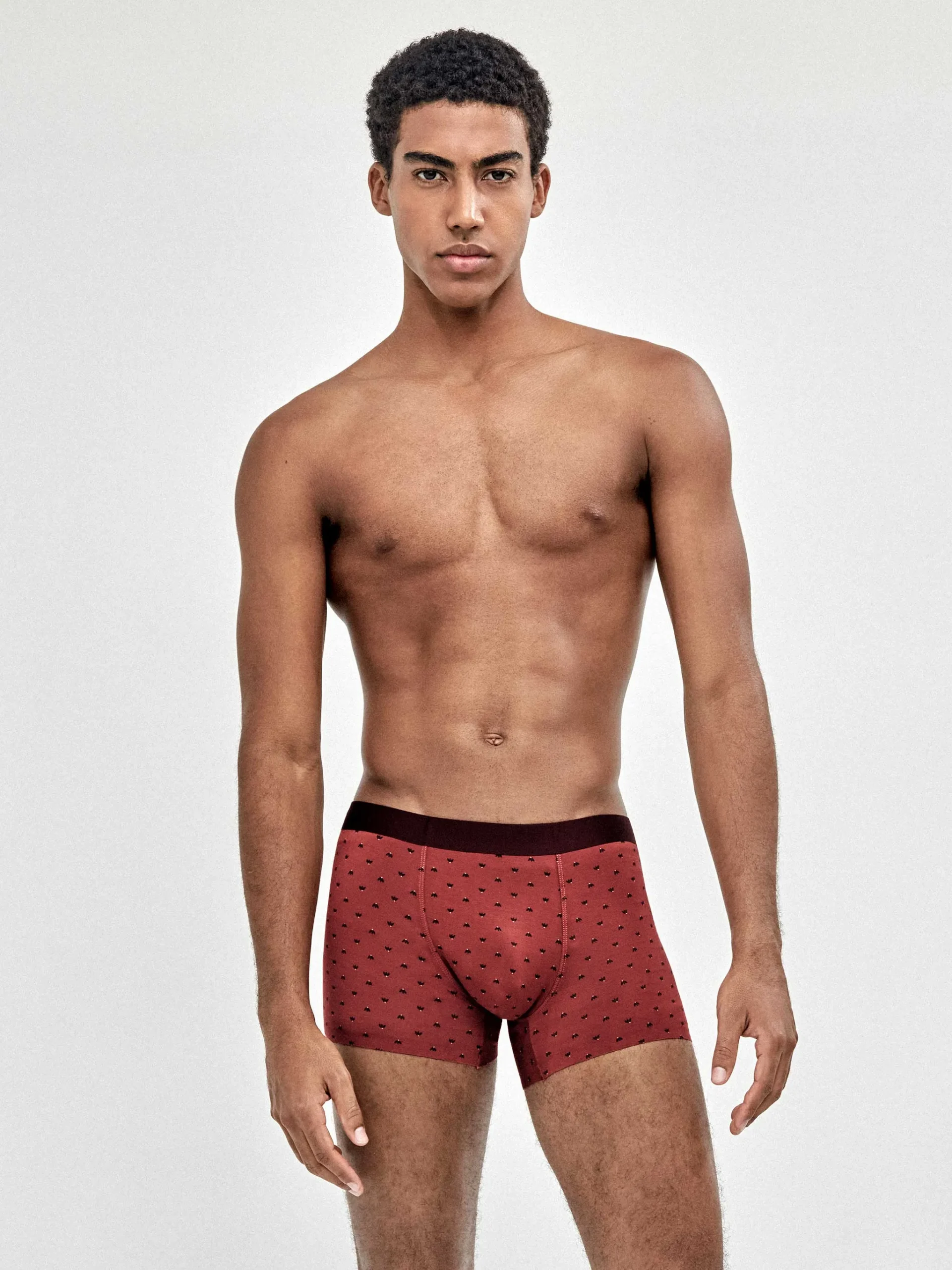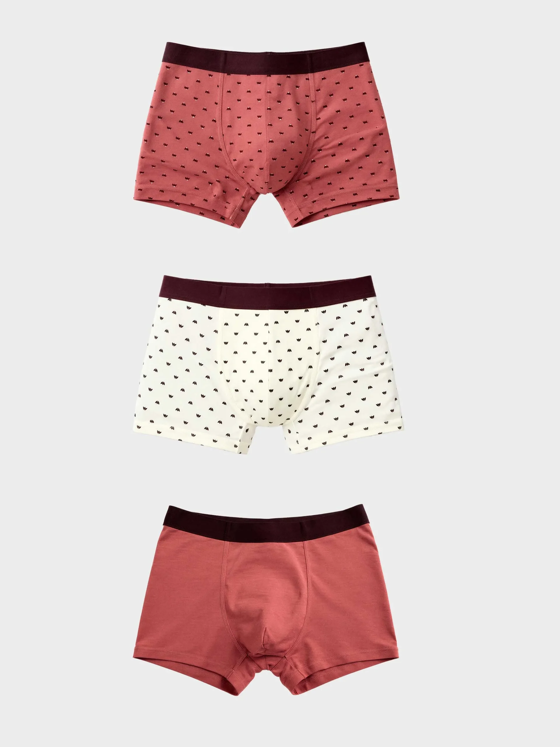 Incluye tres bóxers: dos en microestampado (discretos y modernos) y uno en color granate liso, ideal como básico diferente sin salir de tonos fáciles de combinar.