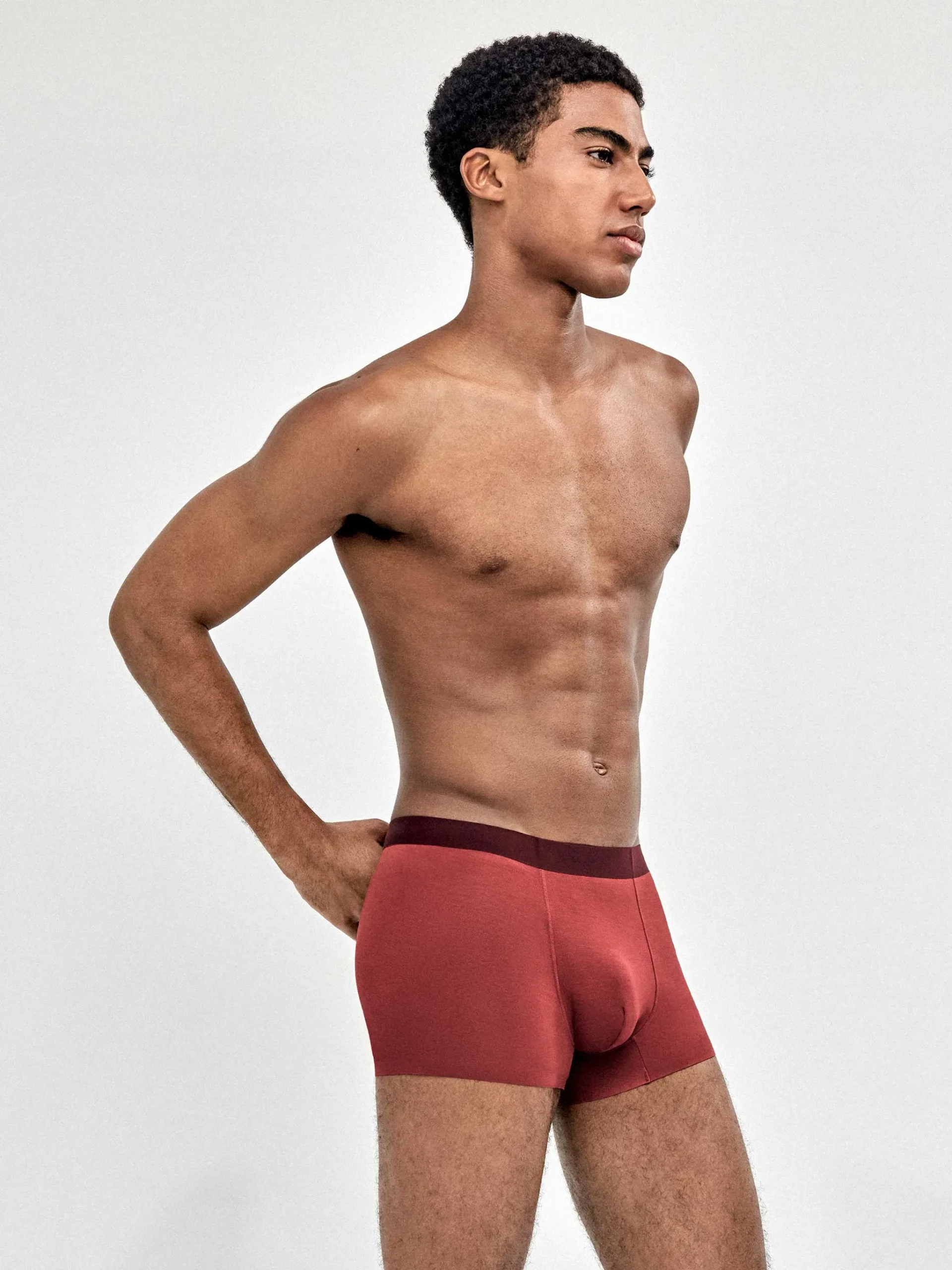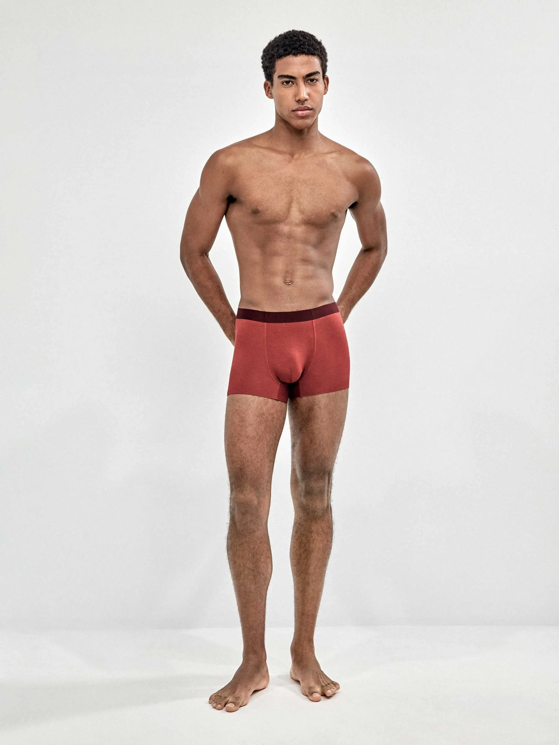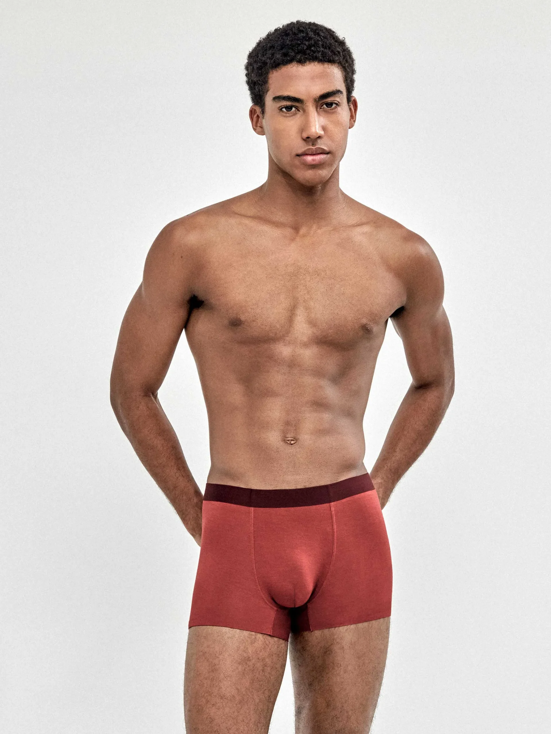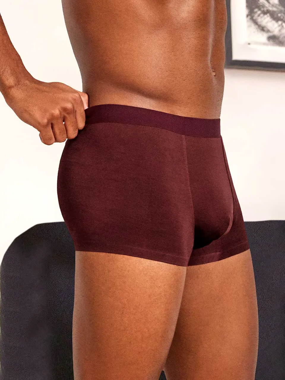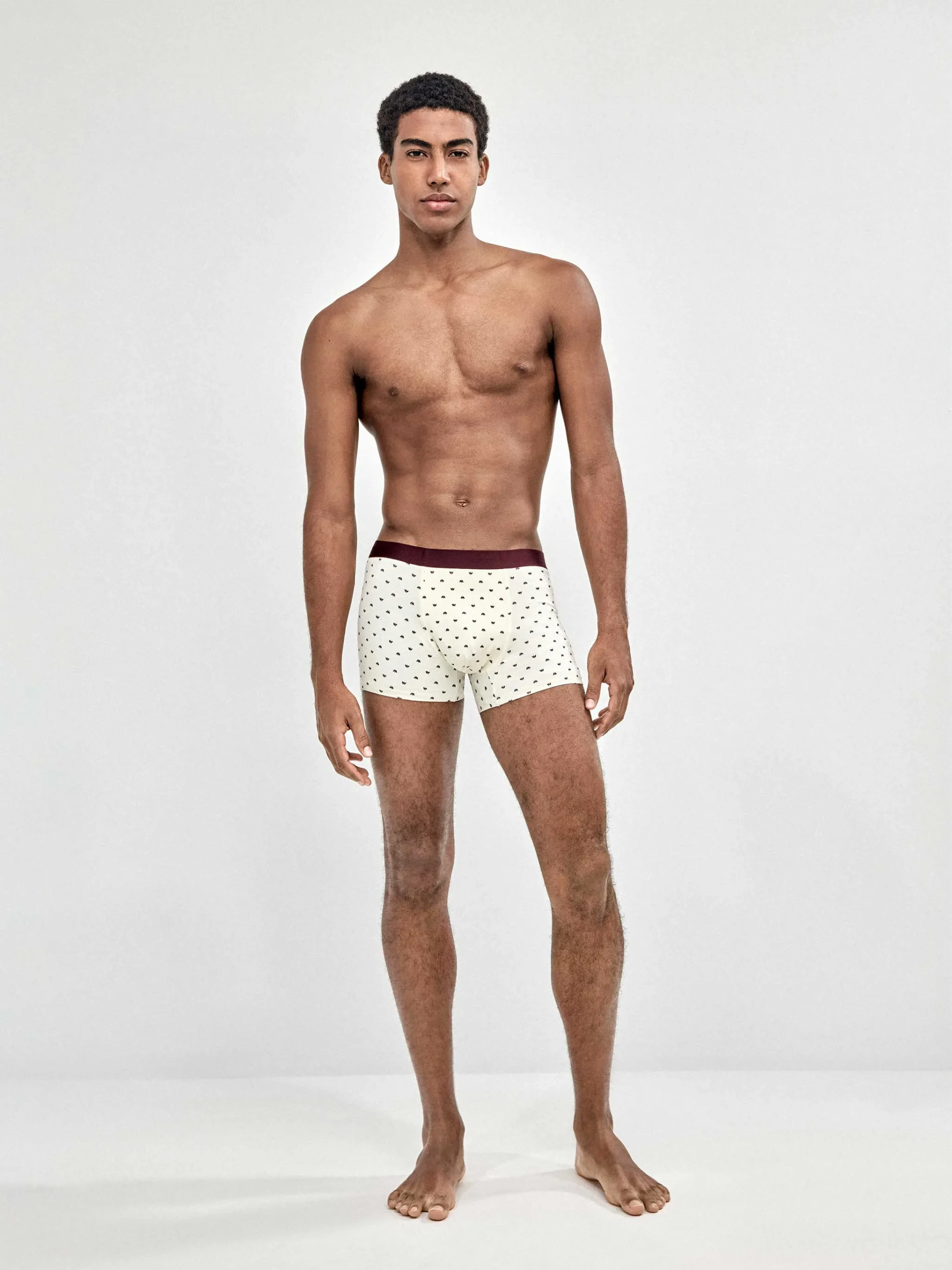 Incluye tres bóxers: dos en microestampado (discretos y modernos) y uno en color granate liso, ideal como básico diferente sin salir de tonos fáciles de combinar.