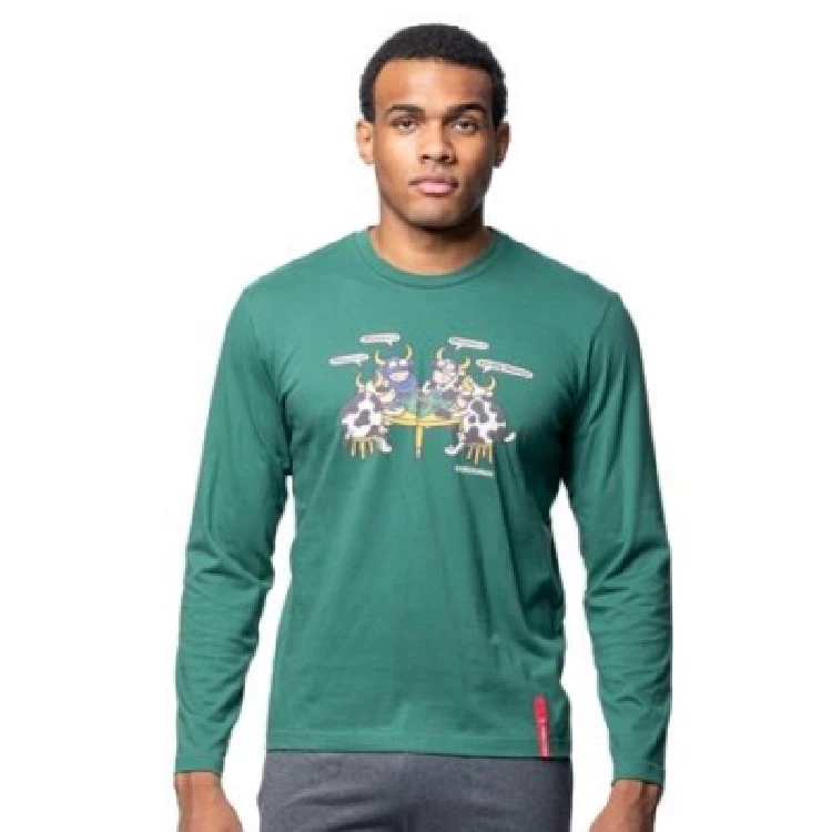 La camiseta de manga larga tiene cuello redondo y un estampado característico de Kukuxumusu en el pecho, (estampado de vacas) lleno de personalidad y humor.