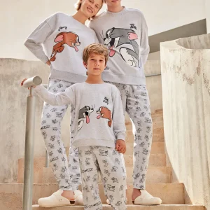 Duerme, descansa y ríe con este pijama de Tom & Jerry. Camiseta tipo sudadera + pantalón estampado en punto interlock súper suave. Cómodo, nostálgico y perfecto para los que aún llevan un niño dentro.Conjunto perfecto para dormir, descansar o disfrutar de tus momentos en casa con un toque divertido. Un pijama ideal para quienes buscan comodidad… ¡y un guiño a su infancia!.