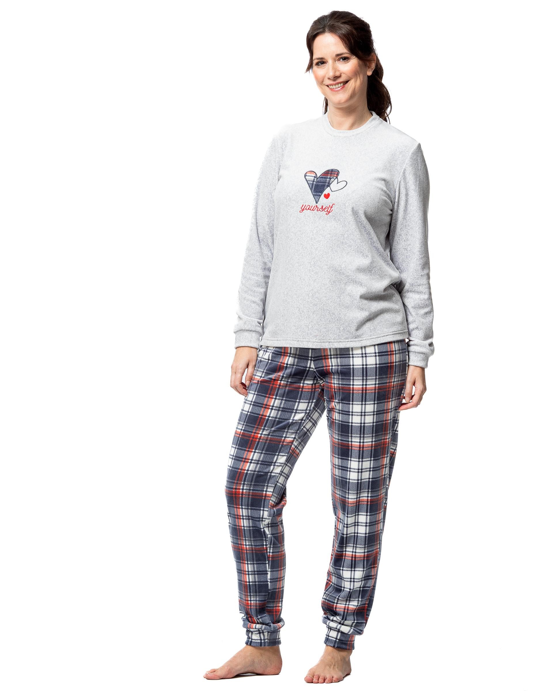 El pijama mujer Egatex 252542 está confeccionado en terciopelo suave, tejido especialmente agradable que aporta calidez y confort en las noches de invierno.
