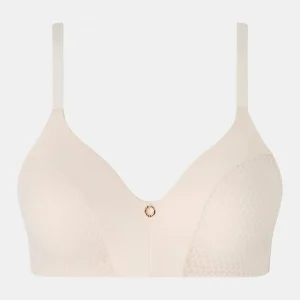 Sujetador Chantelle Honey 916Q9B con relleno sin aros y efecto natural. Encaje “nido de abeja” en malla opaca ultra suave, espalda chimenea para mayor comodidad, tirantes fijos regulables (ancho adaptado a la talla) y detalle de joya plateada en la entrecopa.