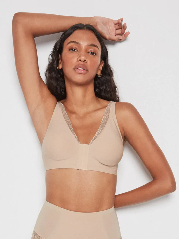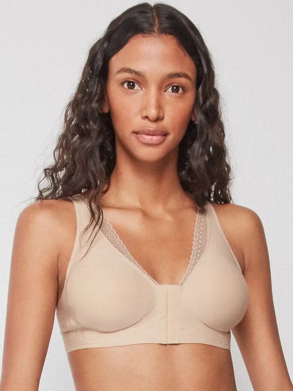 Cierres delantero y trasero facilitan enormemente la colocación y la retirada del sujetador.