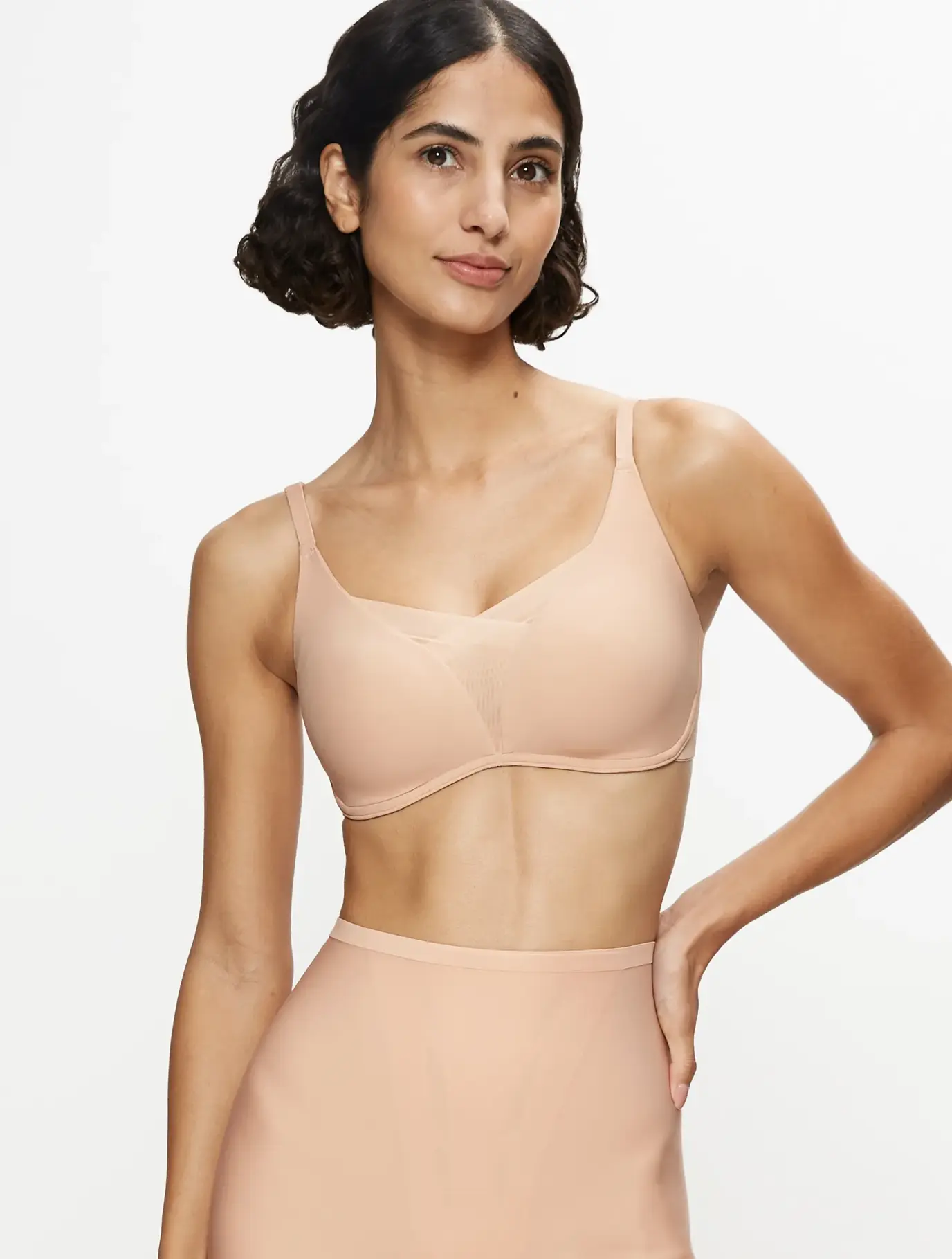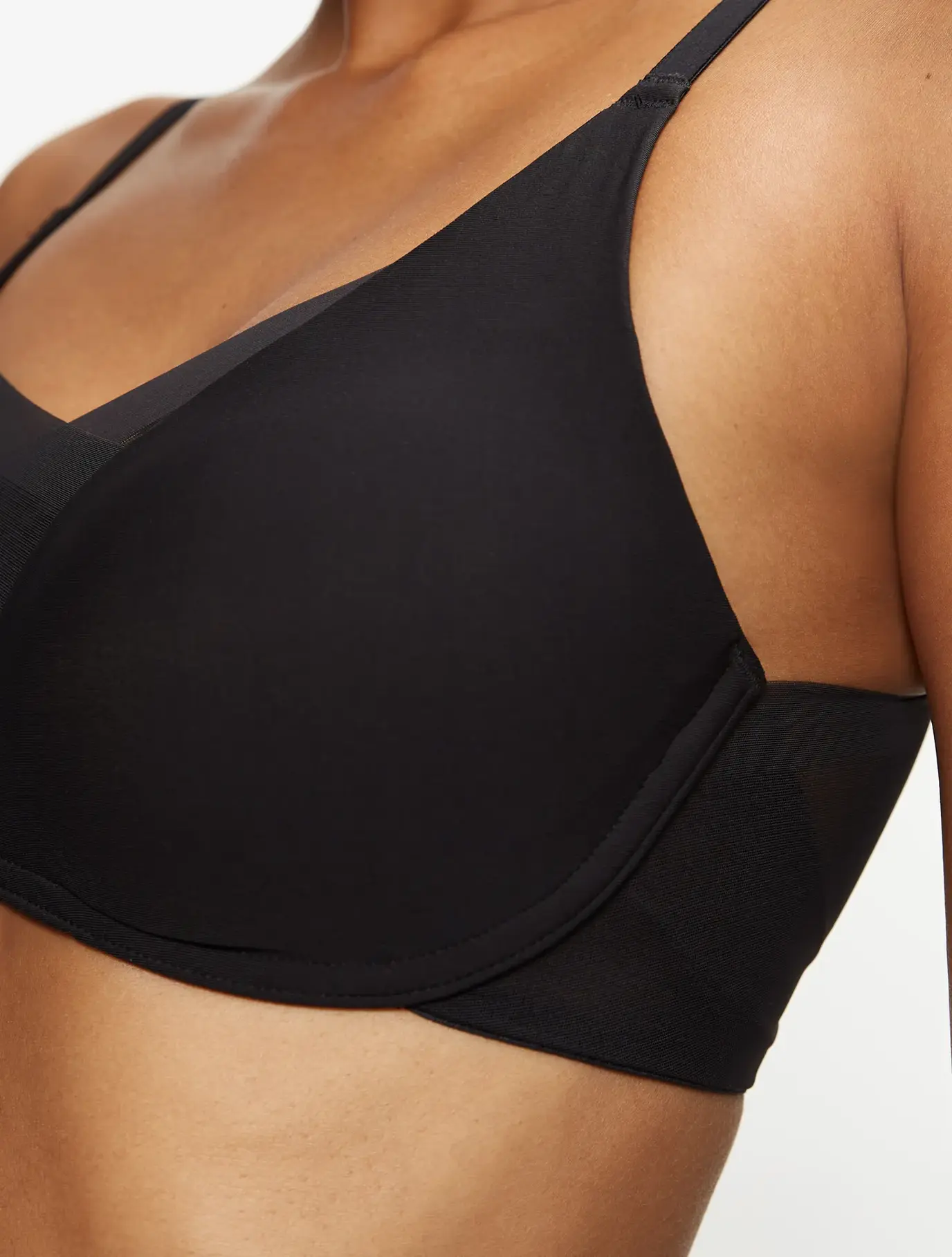 Las capas de malla cruzadas crean un favorecedor escote en V, a la vez que suavizan espalda y sisas para un acabado limpio bajo camisetas, blusas o vestidos.